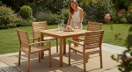 Houten Vierkante Buiten Eetset – Lichtbruin – 4 Persoons
