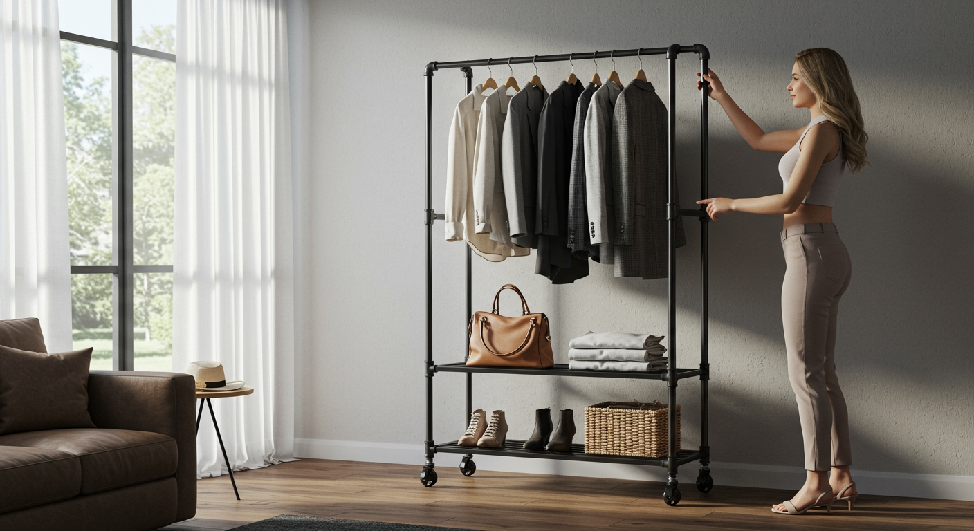 Multifunctioneel Kledingrek met Planken & Wielen