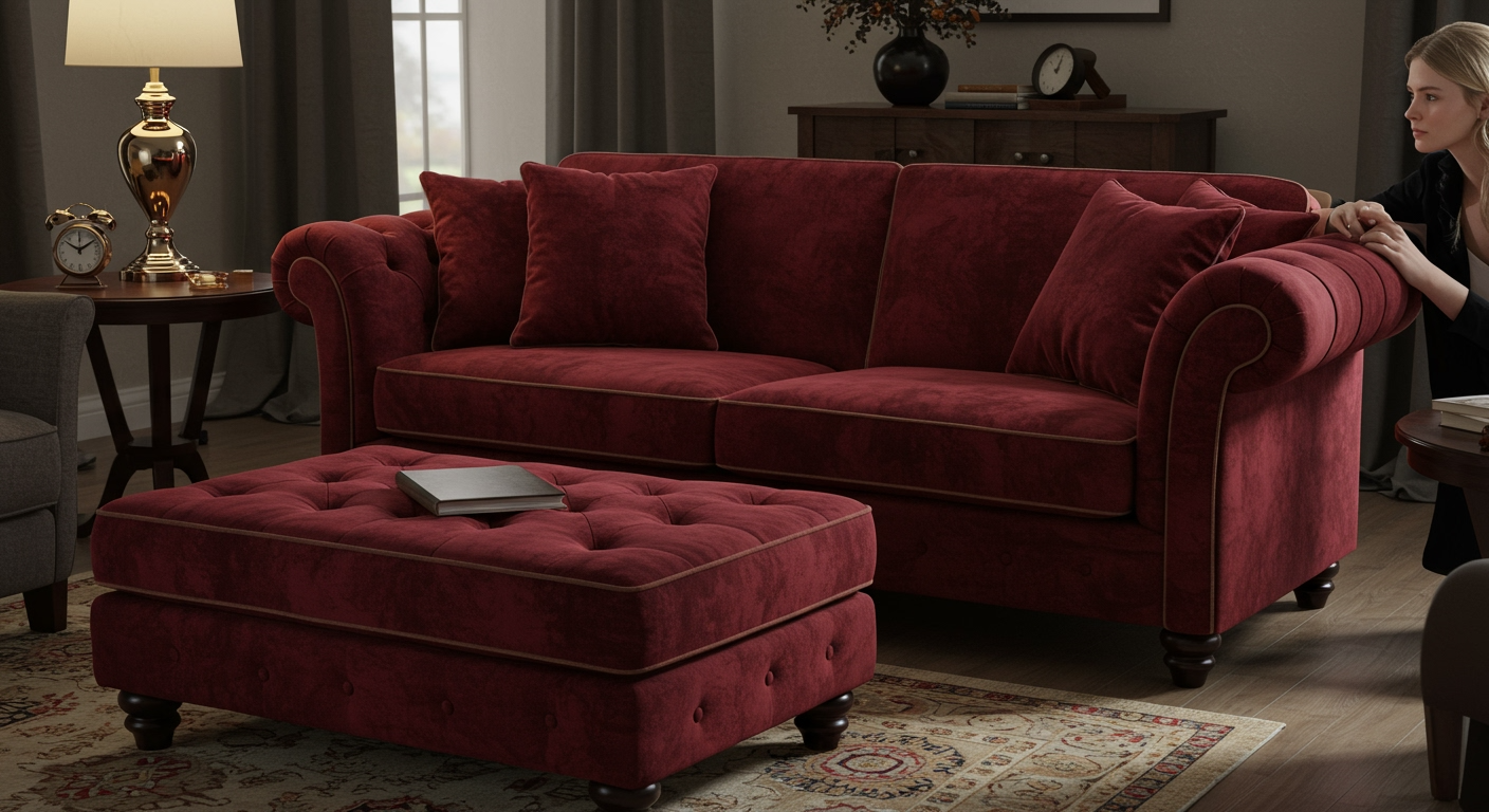 Home Trendprodukte Klassieke Rode Fluweel Sofa & Ottoman Set