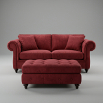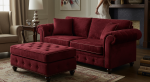 Verrijk uw interieur met de tijdloze elegantie van onze klassieke 2-zitsbank en bijpassende ottoman set, uitgevoerd in een weelderige, dieprode (bordeaux) pluche fluweelachtige stof. Deze set combineert comfort met een verfijnde esthetiek, perfect voor zowel traditionele als eclectische woonruimtes en nodigt uit tot ontspanning en stijl.