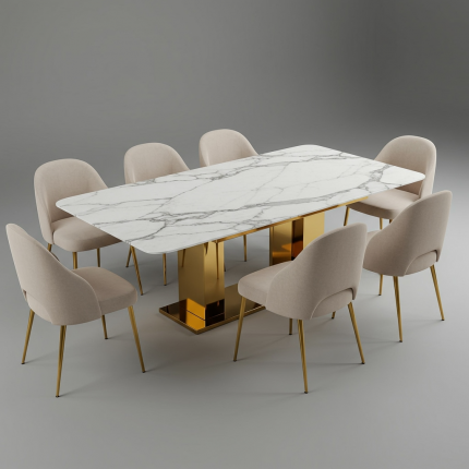 Luxe Marmeren Eetset – Gouden Detail & Comfort