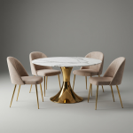 SKU: RU-20 Categories: Gartentischset, Trendprodukte Tags: Chique eettafel, Compacte eethoek, Design meubelen, Eetset 4 personen, Elegante eetkamerset, Gouden accenten meubels, Goudkleurige eetkamerstoelen, interieur design, Luxe eethoek, Marmeren tafel goud onderstel, Modern design eetset, Ronde eettafel marmer, Taupe fluwelen stoelen, Velvet eetstoelen, Woonkamer meubels