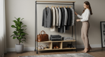 Voeg functionaliteit, orde en een moderne esthetiek toe aan uw leefruimte met dit essentiële kledingrek, ontworpen voor het moderne huishouden.